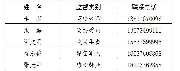 根據(jù)國防部征兵辦公室《關(guān)于建立廉潔征兵“零報(bào)告”制度和廉潔征兵監(jiān)督員制度的通知》要求,按照基層推薦、組織考察、公開公示、集體研究的程序,平橋區(qū)人民政府征兵辦公室聘請了5名廉潔征兵監(jiān)督員,F(xiàn)將名單公示如下: