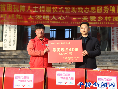活動現(xiàn)場最動人的環(huán)節(jié),莫過于愛心捐贈的瞬間。平橋區(qū)益橋社會工作服務(wù)中心代表托克投資(中國)有限公司,向平橋區(qū)殘聯(lián)遞上了沉甸甸的“暖冬禮包”——為150位視障殘疾人量身準(zhǔn)備的棉被、棉衣、棉褲、盲杖、食用油等生活物資,每份價值780元;同時為40位特困視障殘疾人每人送上500元現(xiàn)金幫扶,讓他們能更靈活地解決生活難題。